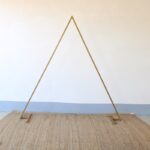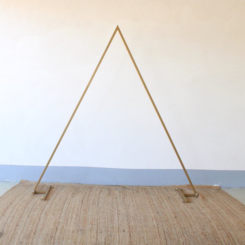 Een gouden backdrop in de vorm van een driehoek, te huren als combi (dubbel), maar ook los (enkel)