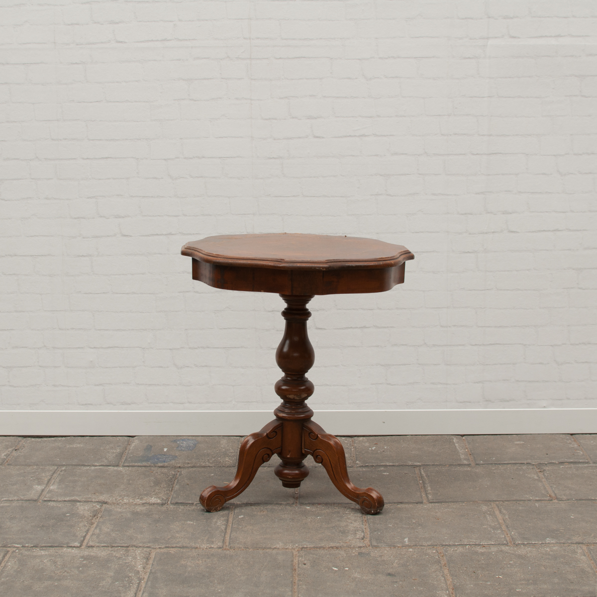 Bijzettafel rond bruin gelakt