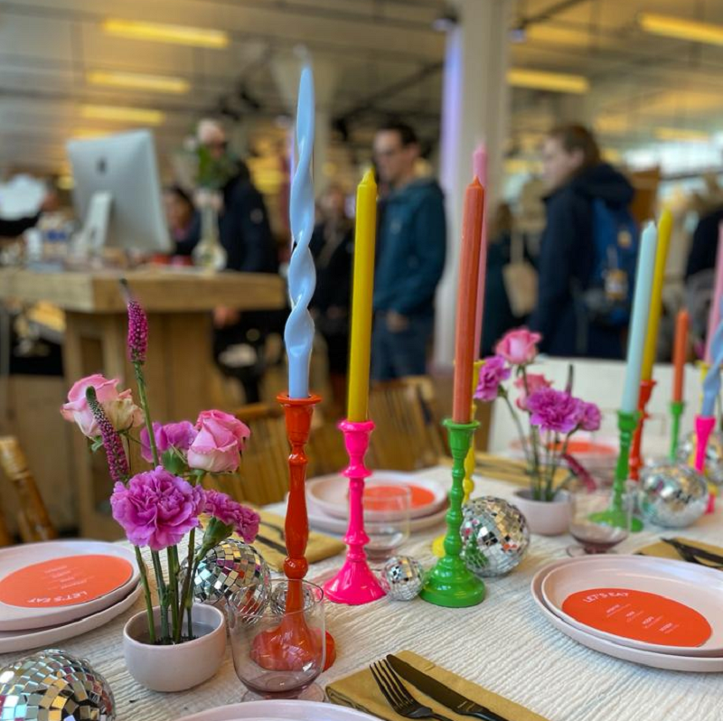 Leuke kandelaars in verschillende neonkleuren