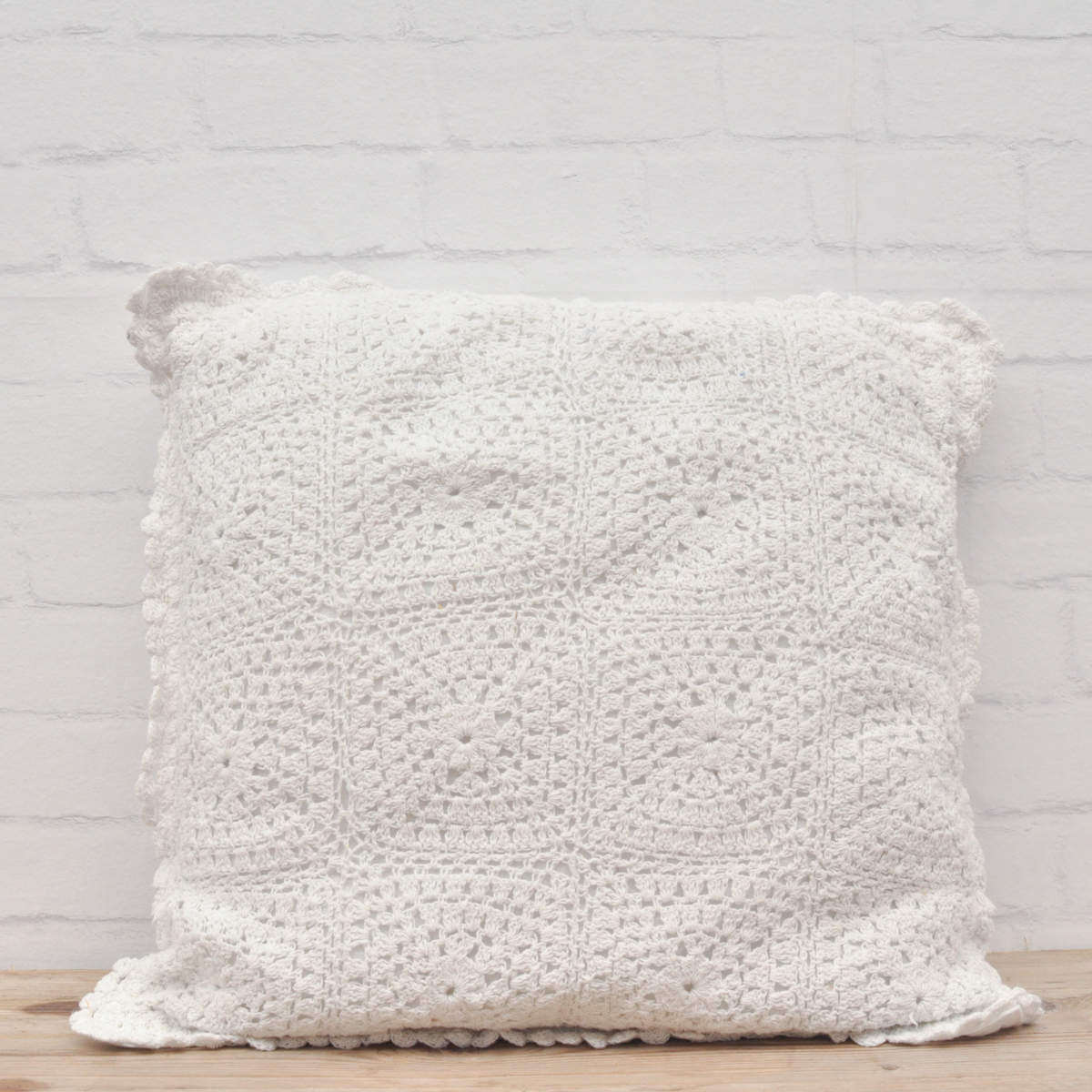Een wit kussen met een mooi kantje.