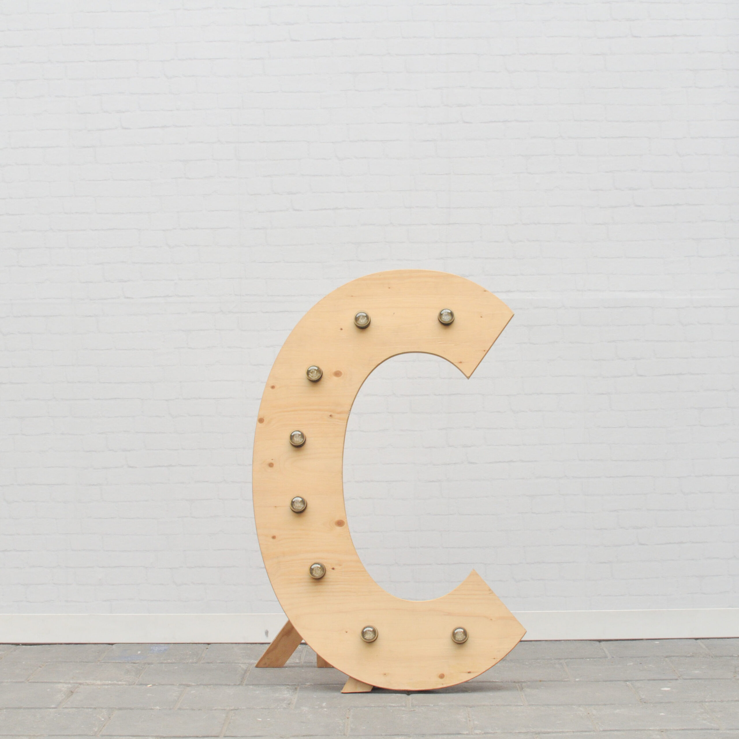 De lichtletter C, circa 60 cm hoog. Ook in een groter formaat beschikbaar.