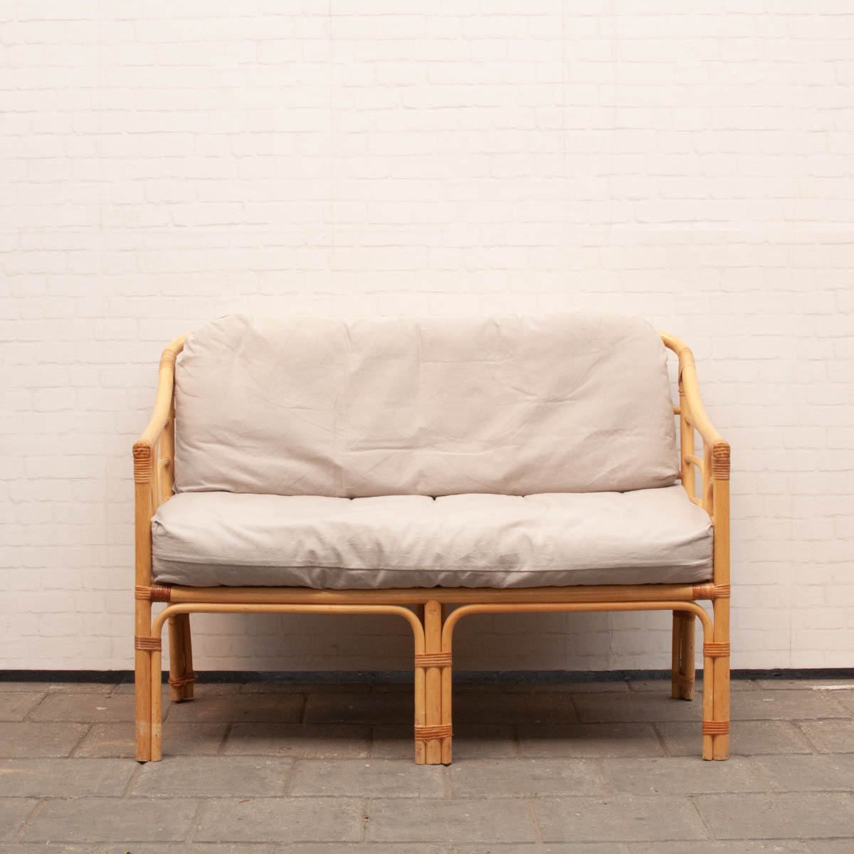 Een rotan bankje.