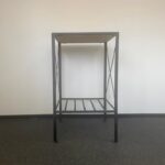 Een stoere statafel in zwart metaal.