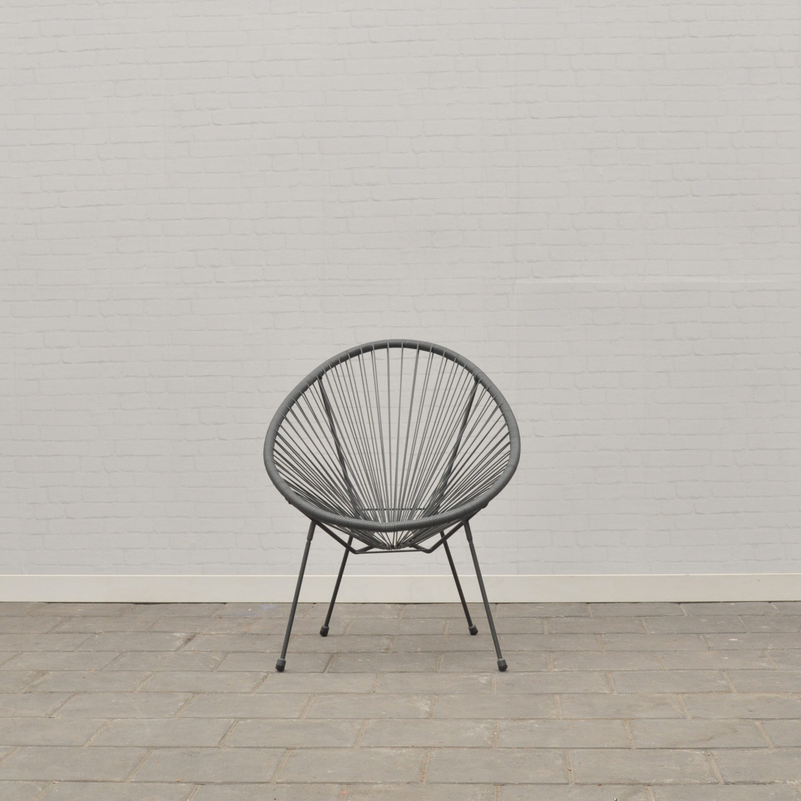Een draadstoel in de kleur grijs.