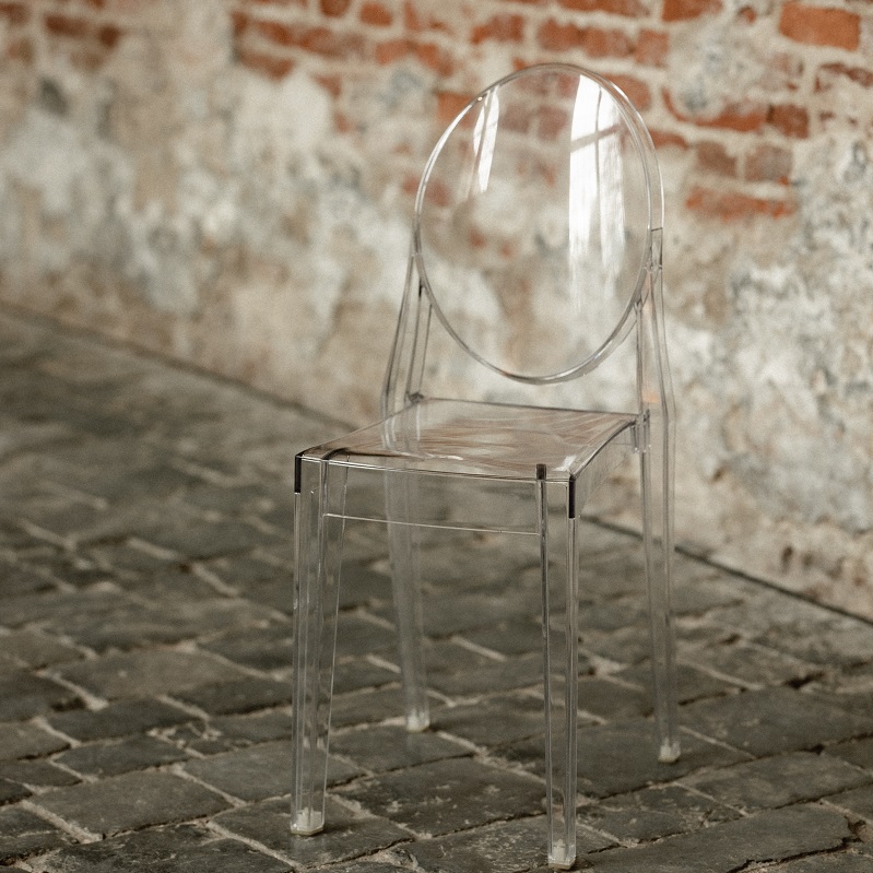 Mooie transparante ‘ghost’ stoelen voor bijvoorbeeld een ceremonie of diner.