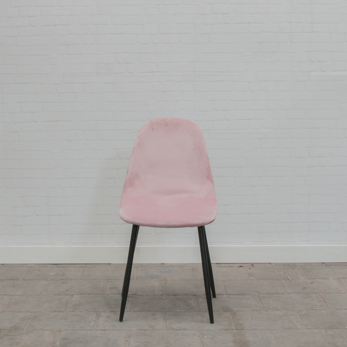 Een roze stoel met een velvet stof.