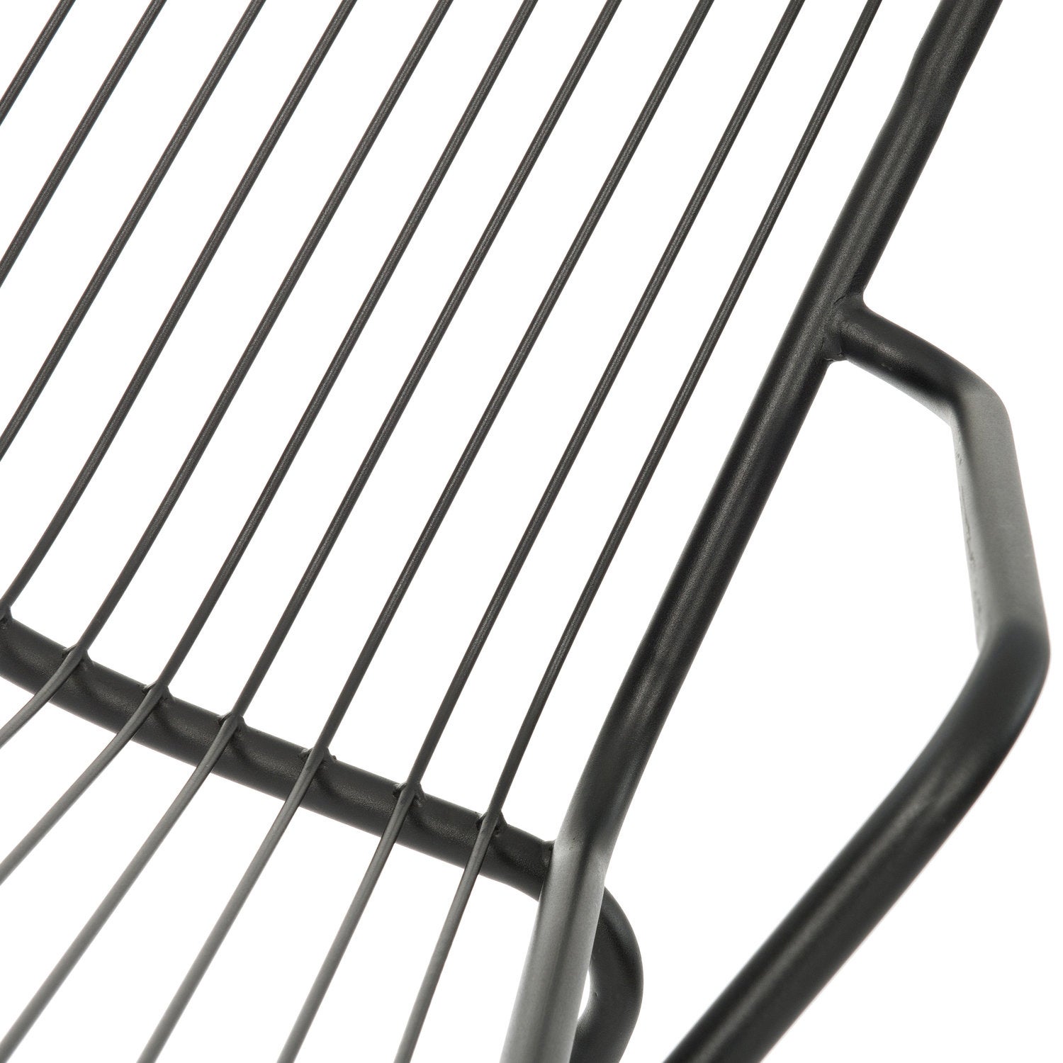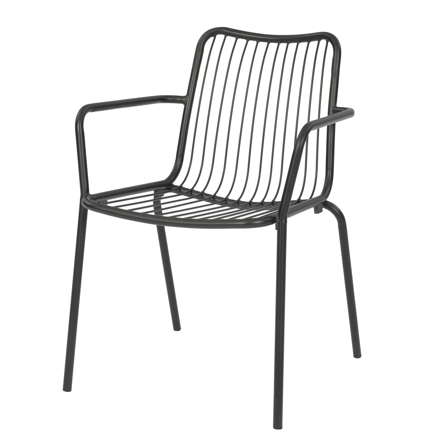 Een metalen stoel met een antracieten kleur.