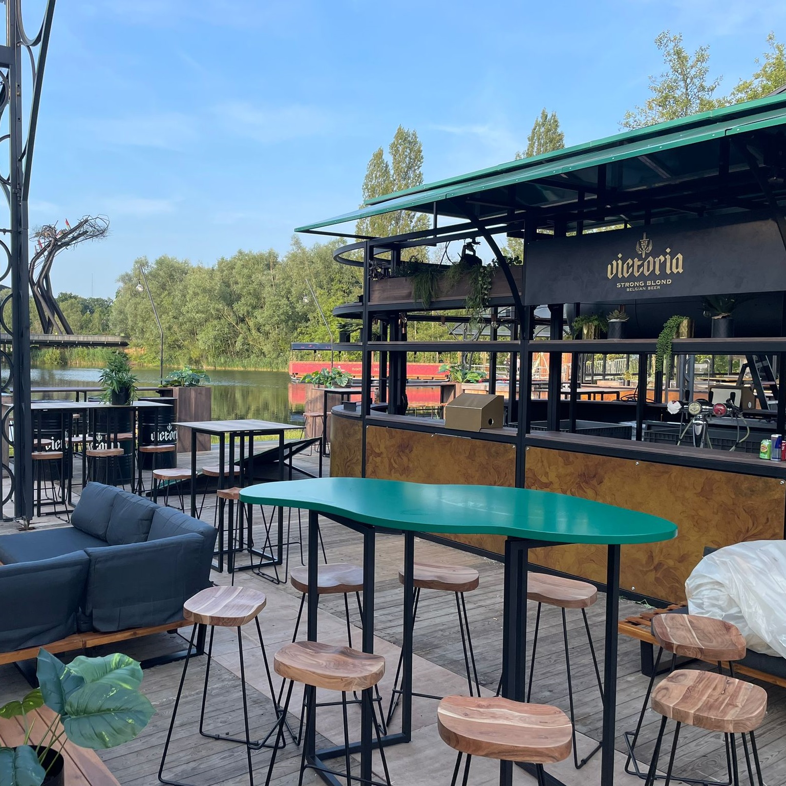 Een mooie organische statafel in de kleur groen. Verkrijgbaar in 4 verschillende organische vormen.