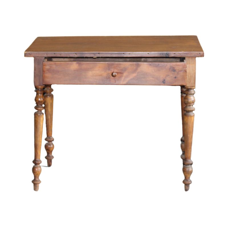 Een houten tafeltje met lade; bijvoorbeeld te gebruiken als tekentafel.