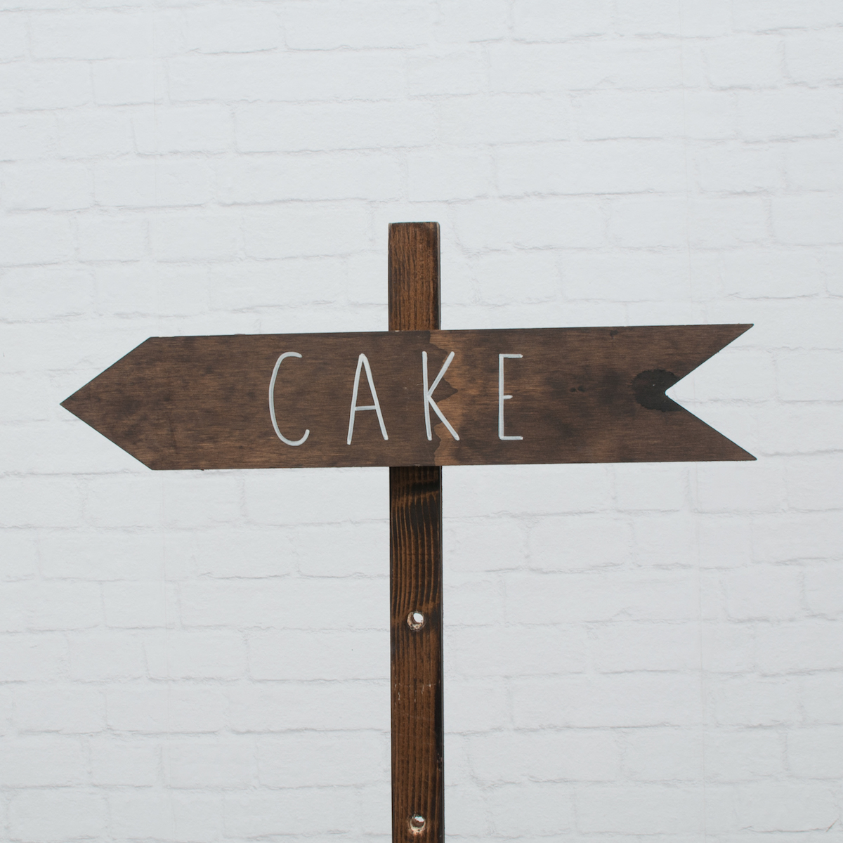 Wegwijzer cake links. Makkelijk te bevestigen op onze wegwijzerpaal met de bijgevoegde vlindermoer.