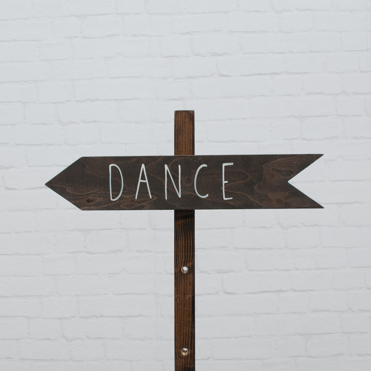 Wegwijzer dance links. Makkelijk te bevestigen op onze wegwijzerpaal met de bijgevoegde vlindermoer.