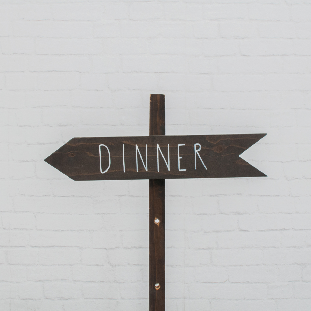 Wegwijzer dinner links. Makkelijk te bevestigen op onze wegwijzerpaal met de bijgevoegde vlindermoer.