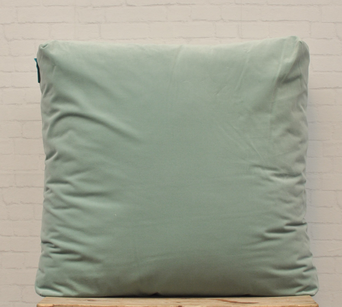 Lichtgroen velvet zitkussen.